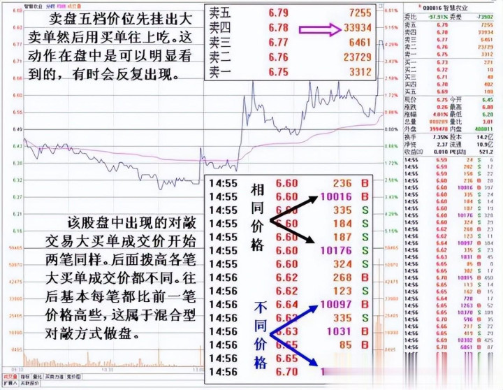 对于庄家作念盘对敲的门径细节,笔者这几年所写著作大篇幅先容绝顶多了。但仍然是有不少读者在这方面齐集不彻底,常问及这些问题。今天看盘发现几个股票盘中出现几种不同作念盘对敲细节,顾借此为案回想一下往日先容过的几种经典庄家对敲的作念盘绝招。
