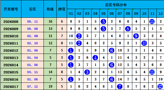上期后区开出奇偶号码07,12,最近10期奇偶比11:9,奇数号码数量较高,本期推荐奇偶组合05,08。
