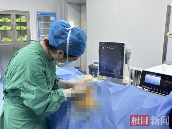 张先生顺利接受了内热针治疗,治疗过程中,孟丽医生先在张先生腰背处标记出需要穿刺的痛点,并为张先生做了局部麻醉。接着,她将直径仅0.5-0.8mm的内热针,穿刺到张先生病变部位的筋膜层或肌肉痉挛区,再连接专用加热仪器,让温热感持续渗透至病变组织。30分钟后,治疗顺利完成。