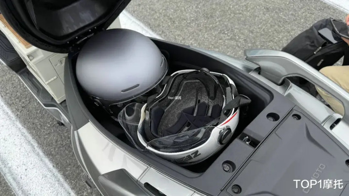 座桶空间实足的大,春风150SC-F的座桶能放一顶全盔和一顶半盔,这个表目下同级别平踏板当中实足优秀了,也简略首肯无需尾箱的曩昔双东谈主出行,这亦然小编以为平踏板理念念的座桶大小,天然更大少量笃定更好啦。