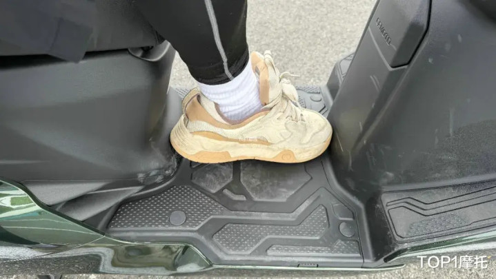 150SC-F的平踏板区域也挺宽绰,在中间最窄的位置,简略放下43码的鞋子,也能放一些大体积的物件,搭配斜脚踏的野心,在具备实用性的同期,还简略提供更高的感奋性。