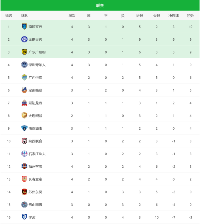 北京时代4月11日,2026赛季中甲联赛,第4轮比赛先战5场。本轮长春亚泰在主场打败陕西集中,深圳后生东谈主客场大捷宁波,南通支云绝杀苏州东吴登上榜首,广东广州豹主场小胜无锡吴钩,梅州客家主场逆转绝杀广西恒宸。