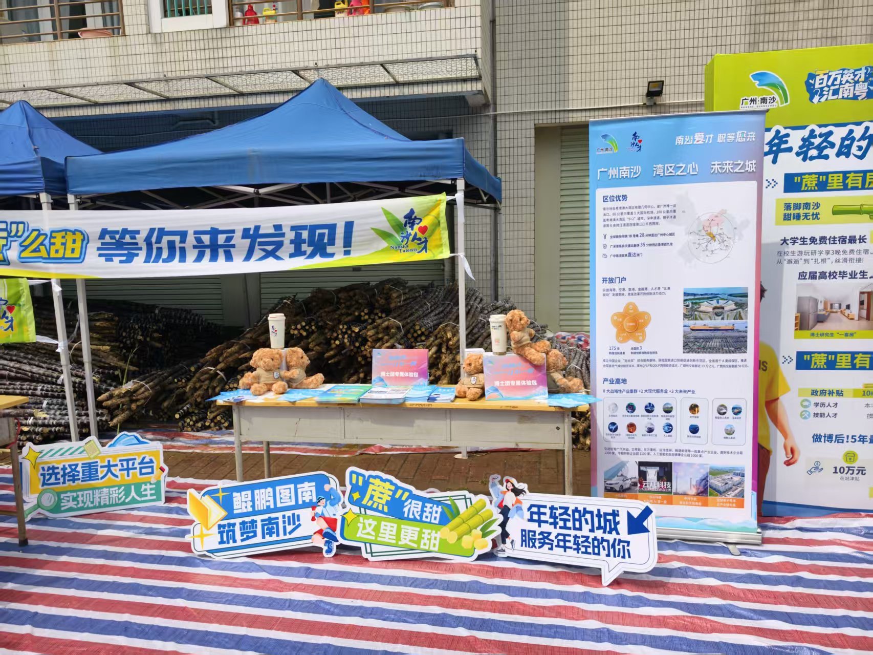 3月23日以来,南沙将“火出圈”的甘蔗送到更多广州高校的同期,南沙东说念主才发展公司的东说念主才服务官团队还在甘蔗披发点边支起了“工作创业摊位”,将东说念主才计策的“甜”与甘蔗“掂过碌蔗”的好意头一并送到高校学子的心中。
