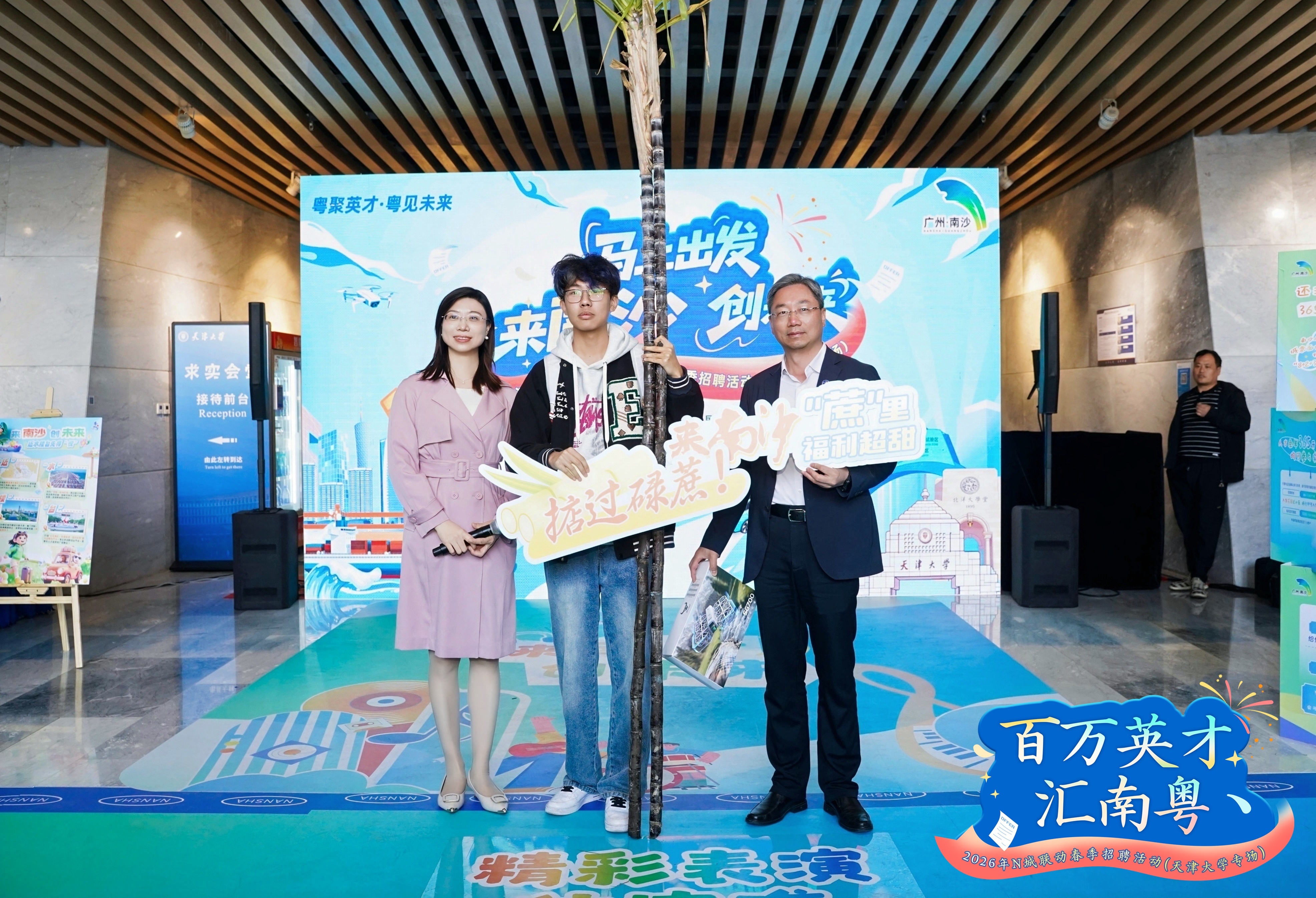 除了有劲度的补贴,南沙还带来了甜度。现场,东说念主手一根的南沙甘蔗成为了天津学子们热议的对象。