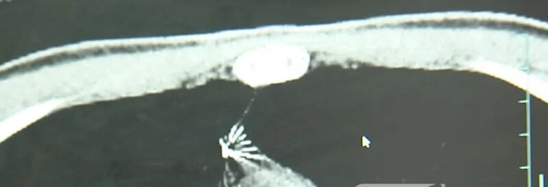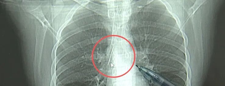 家东说念主飞速带着小陆到西湖大学医学院附属杭州市第一东说念主民病院就医。接诊的心怀外科副主任冯兴暗意:“这根针的阴毒部,碰劲指向他体内的一个大血管,边上是上腔静脉和胸主动脉,这根针稍有失慎,就有可能形成左近血管的挫伤,致使危及生命。”