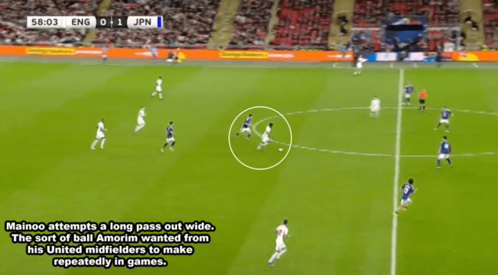 对日本队的比赛,梅诺有几次试图大限制转化,然而,他的长传球精度不够,远莫得达到曼联队友卡塞米罗和B费的水平。
